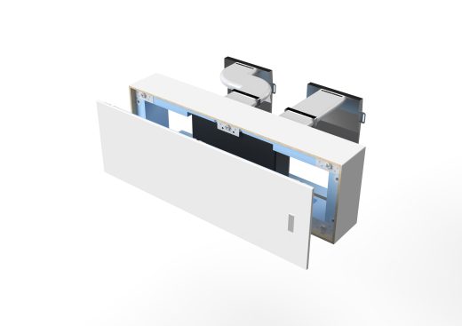 MyBox Revo Light può essere configurato per l’integrazione nativa di una VMC puntuale a doppio flusso (tecnologia Helty), mimetizzando il dispositivo nel cassonetto. La soluzione con VMC garantisce il ricambio e la filtrazione dell’aria, mantenendo sotto controllo l’umidità e prevenendo la formazione di condense e muffe.